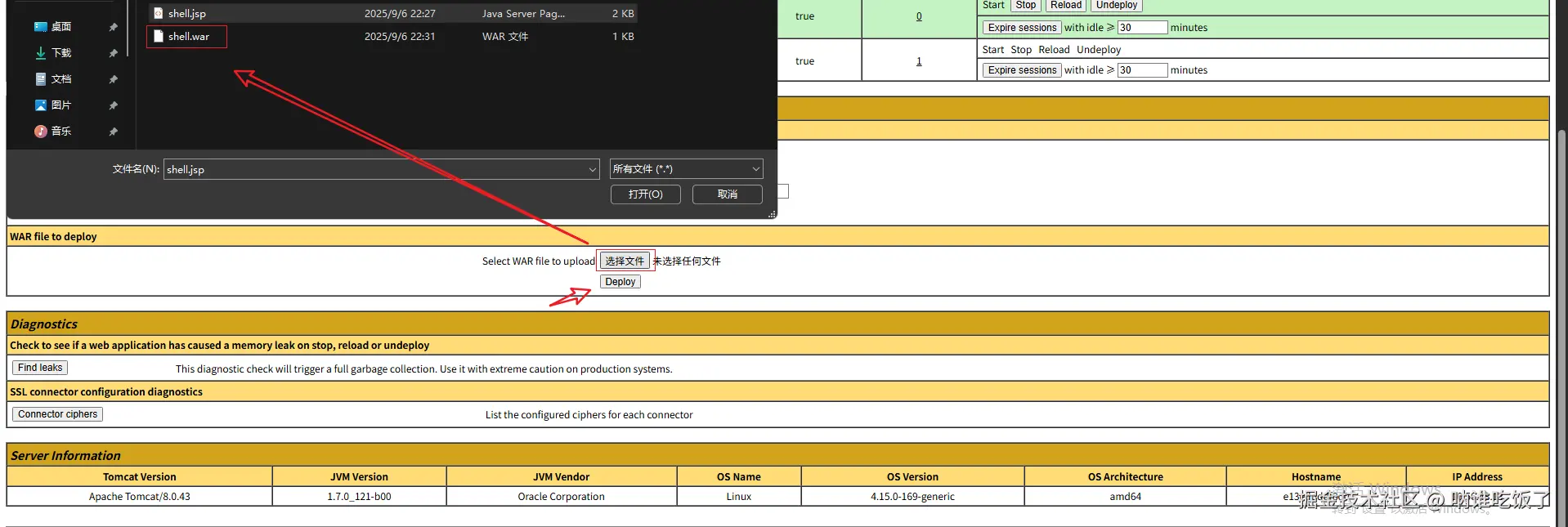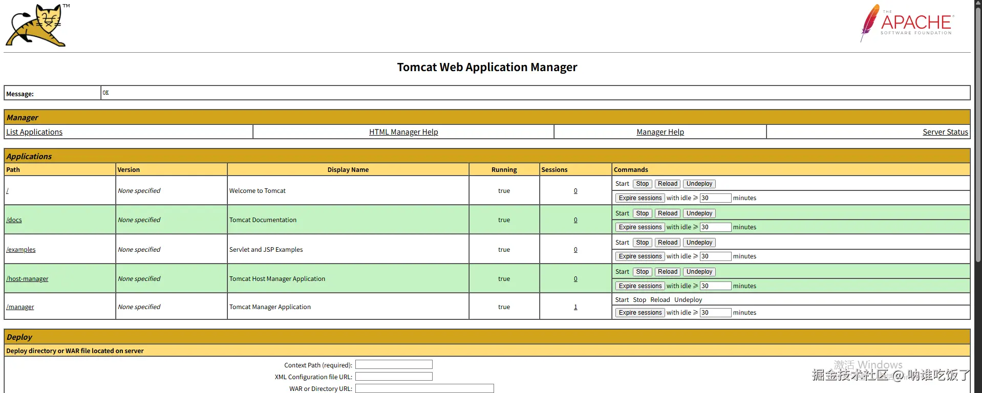 Tomcat默认后台路径是/manager/html,访问该目录,将shell.jsp上传: