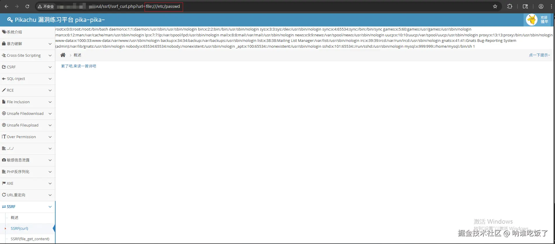三、SSRF漏洞原理以及靶场ssrf漏洞复现读取文件效果