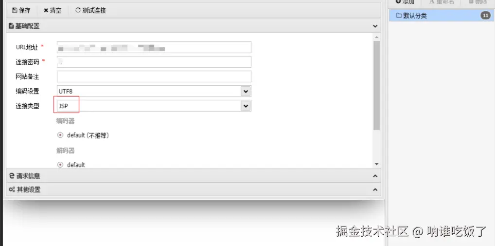 上传完成后,点击连接。注意:要访问shell.jfp的目录: