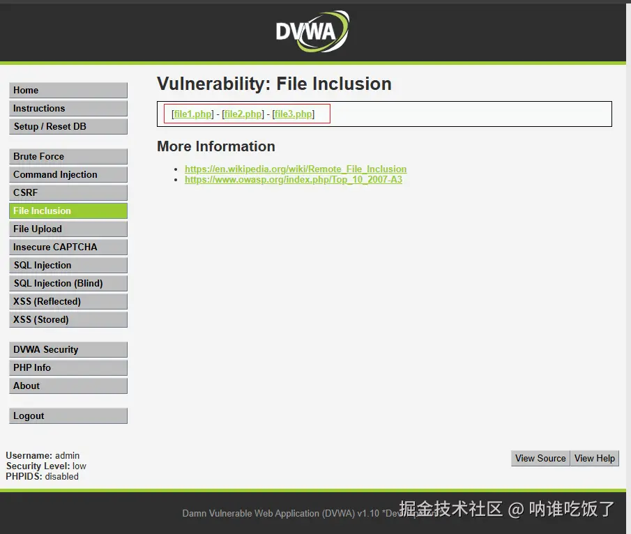 - 输入可控:当这些函数的参数(即要包含的文件名)直接来自用户输入(如 GET、POST 参数),而程序又未对输入进行严格过滤或白名单校验时,攻击者就能控制参数值。