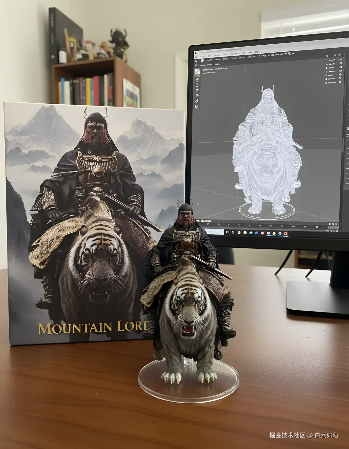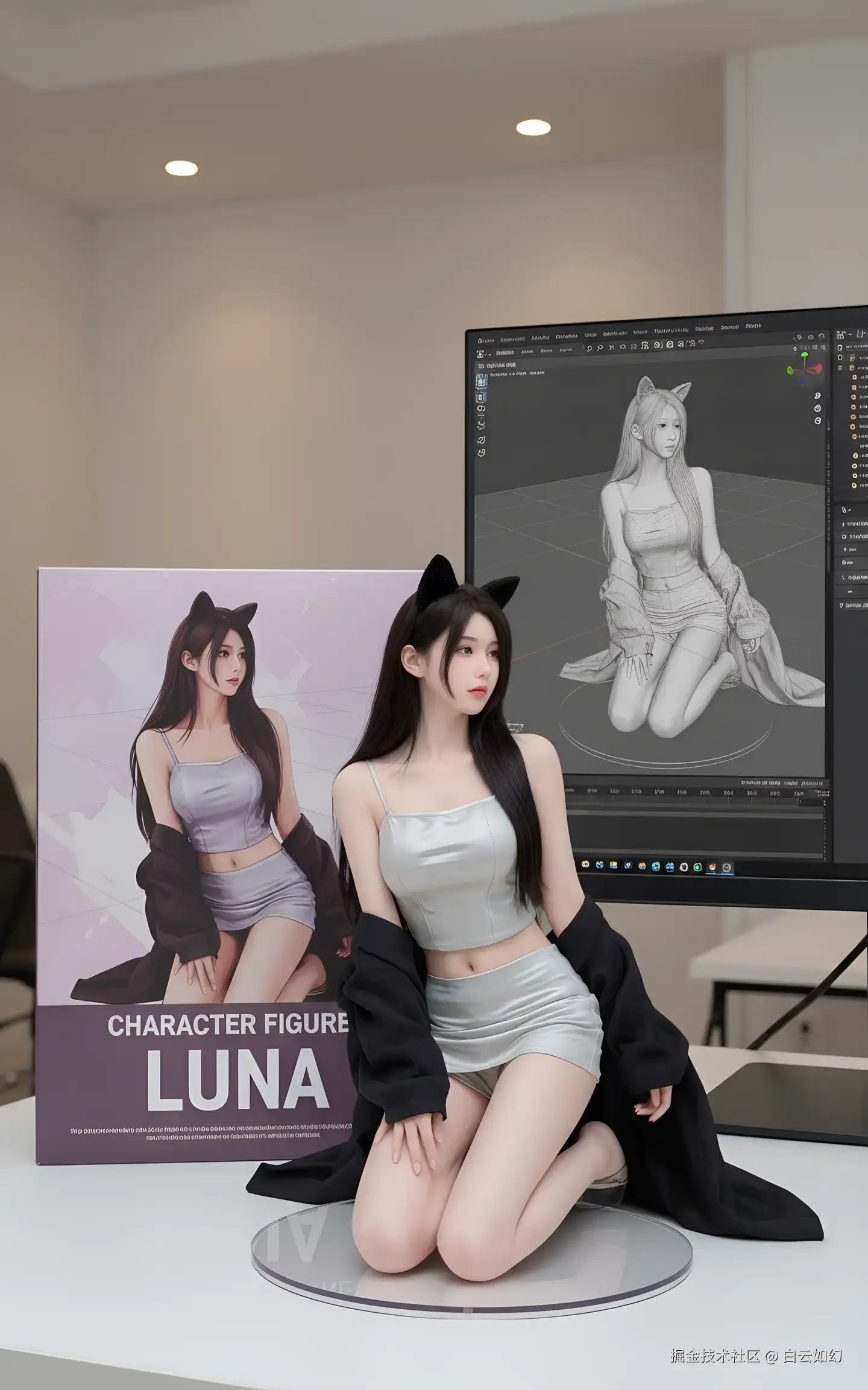 生成指定角色的 1/7 比例商业化手办图像,以写实风格为核心,精准刻画手办的材质细节(如金属配件的光泽、布料的褶皱肌理)与立体轮廓。手办搭配无文字的圆形透明亚克力底座,底座边缘需呈现轻微通透质感,放置于整洁的电脑桌面中;电脑屏幕明确显示该手办的 Zbrush 建模界面(需包含工具栏、模型线框等专业细节),屏幕旁并列摆放印有角色原画的 BANDAI 风格玩具包装盒,包装盒设计需贴合日系手办包装的经典元素(如醒目角色主视觉、简约产品信息栏),整体场景突出 “手办创作从数字建模到实体包装” 的完整流程感。