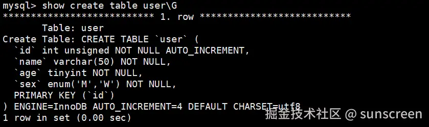 用explain来查看sql的执行计划,分析索引的执行过程,这里我们以user表为例:
