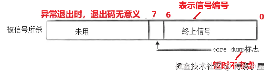 当父进程使用 wait,waitpid 或相关的系统调用等待其子进程终止或暂停时,内核会通过 status参数向父进程传递一个整型数字。这个数字本身是一个位图(bitmask),它不是一个简单的退出码,而是一个包含了多种信息的编码值。