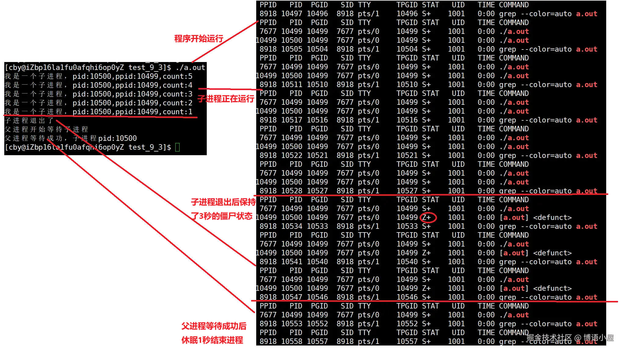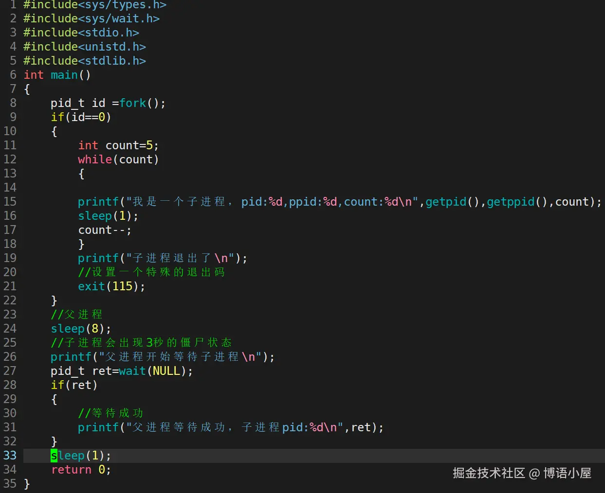 wait调用实际并不重要,我们只用它来验证进程等待解决僵尸问题,重要的是下一个waitpid