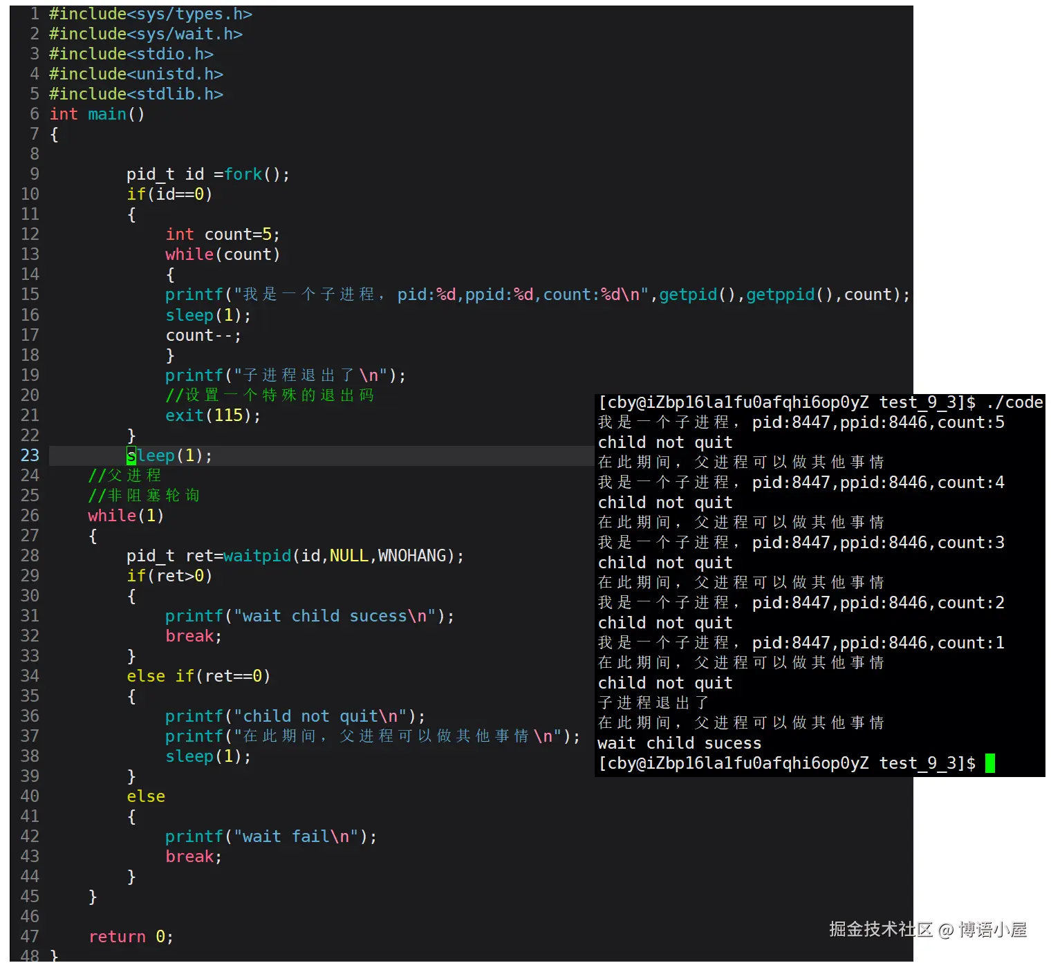 相对于阻塞等待,非阻塞等待更加高效,因为它不会卡住父进程,父进程在等待的间隙可以做其他事情