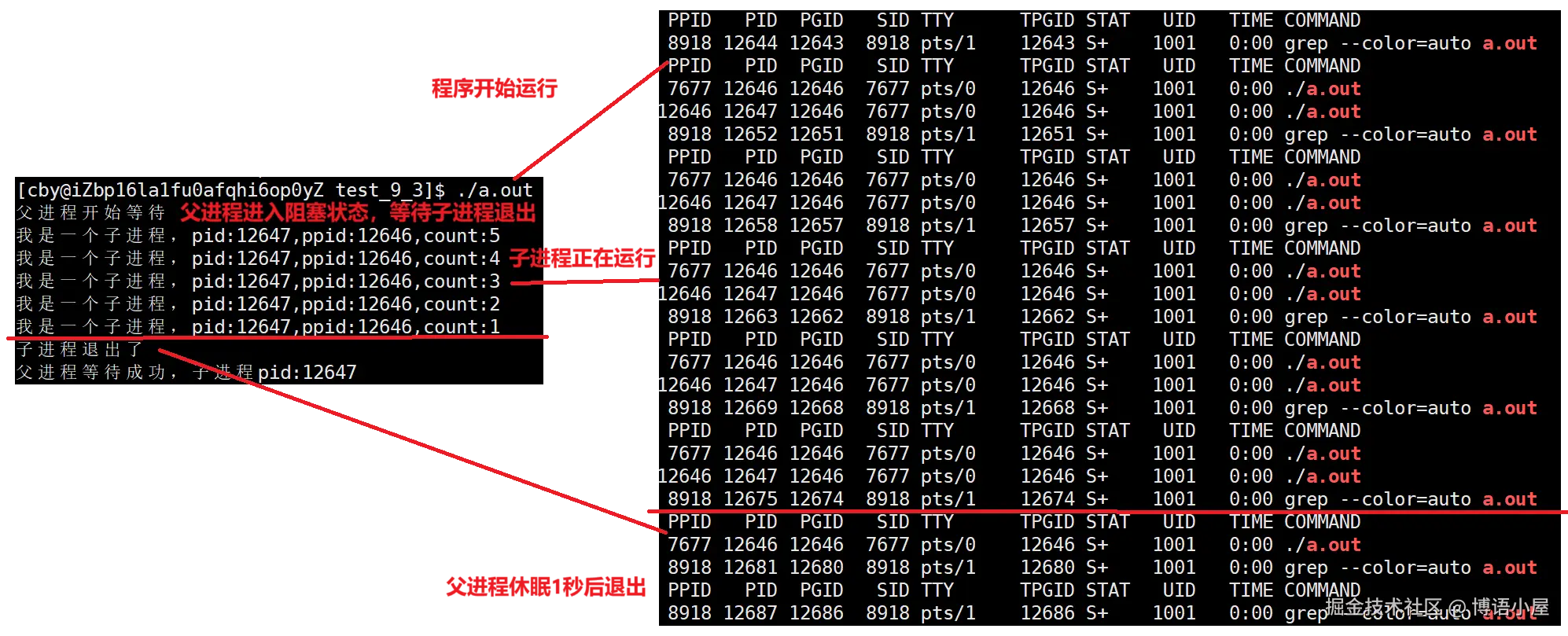 1 如果子进程没有退出,父进程wait的时候就会阻塞