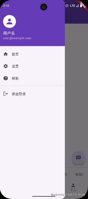 drawer | Widget? | 左侧抽屉菜单 |