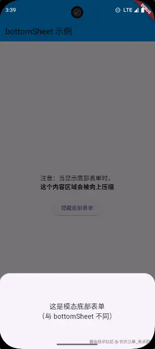 Widget? bottomSheet, // 底部表单,从底部向上滑出