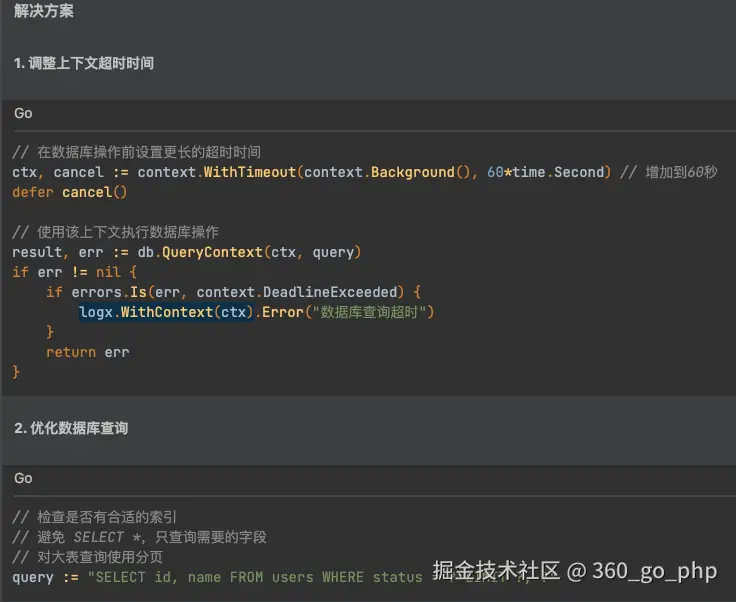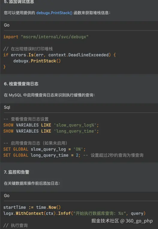 通过这种方式,可以追踪请求的生命周期,方便定位 context deadline exceeded 错误的具体原因。