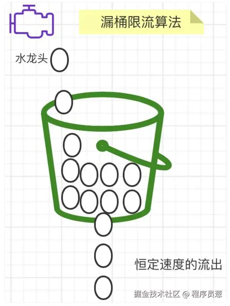 优点:能够提供一个稳定的流量输出,有效避免突发流量对系统的冲击,保证所有请求都按照相同的速率被处理,从而保证公平性。