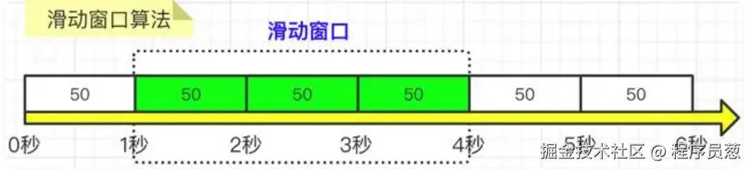 比如我们设置,3秒内不能超过150个请求,那么这个窗口就可以容纳3个小窗,并且随着时间推移,往前滑动。每次请求过来后,都要统计滑动窗口内所有小窗的请求总量。