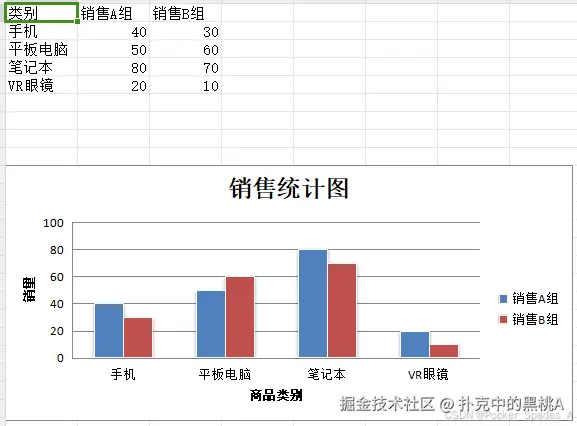 ('类别','销售A组','销售B组'),