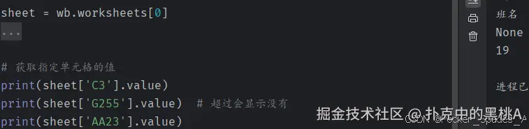 语法:sheet['XX'].value