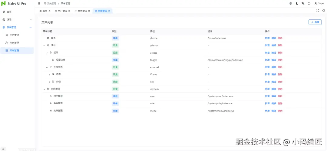 naive-ui-pro 是一个完全免费且开源的中后台解决方案,基于 Vue3、Vite 和 TypeScript 开发,同时深度集成 naive-ui 组件库,并在此基础上封装了 pro-naive-ui 组件库。与市面上大多数 admin 框架不同,naive-ui-pro 创新地采用了基于路由的插件化架构设计。这种设计让整个系统像搭积木一样,通过一个个独立的插件逐步构建起来,每个功能模块都由独立的插件实现,职责清晰,易于维护。