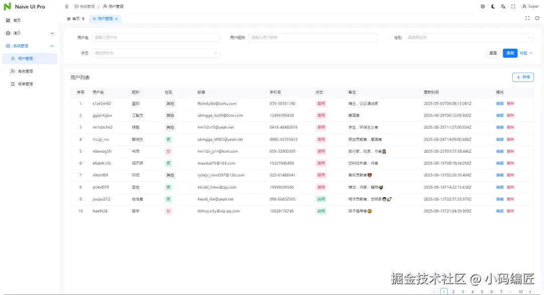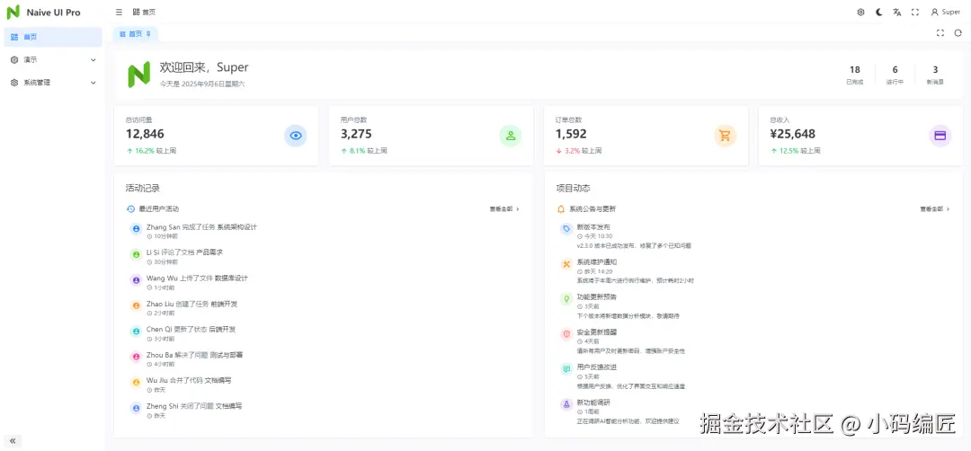 在实际使用中,naive-ui-pro 展现出极高的灵活性和可扩展性。开发可以快速搭建出功能完整的中后台系统,同时根据业务需求进行定制化开发。其插件化设计使得功能增减变得异常简单,大大缩短了开发周期。多布局和移动端支持也让系统能够适应更多使用场景。