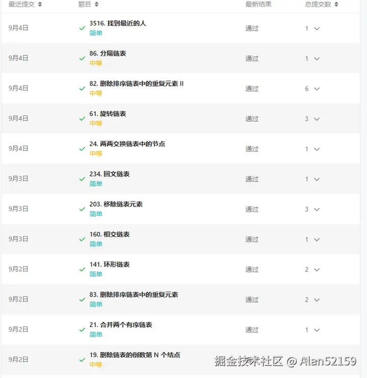 最开始连双指针是什么都搞不懂,链表题看一眼就头疼,动态规划更像是某种“黑魔法”。但现在,一个月过去了,我可以独立完成大部分简单和中等难度的题目,尤其是经典题型:双指针、哈希表、链表、动态规划,都能慢慢摸出套路。