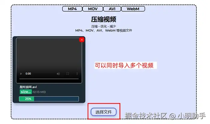 视频压缩在线使用步骤:进入到该网站之后,点击【选择文件】上传视频文件并等待压缩完成即可。但是,小编并不建议大家导入多个视频文件,因为对于这个在线网站来说,同时处理多个视频的压缩工作也是一种负担。
