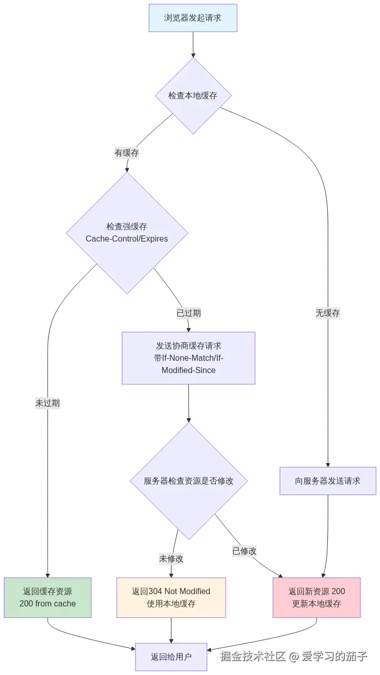 在向服务器发送请求之前,浏览器会做一个聪明的检查:“这个资源我本地有吗?还能用吗?” 这就是浏览器缓存机制,分为强缓存和协商缓存。
