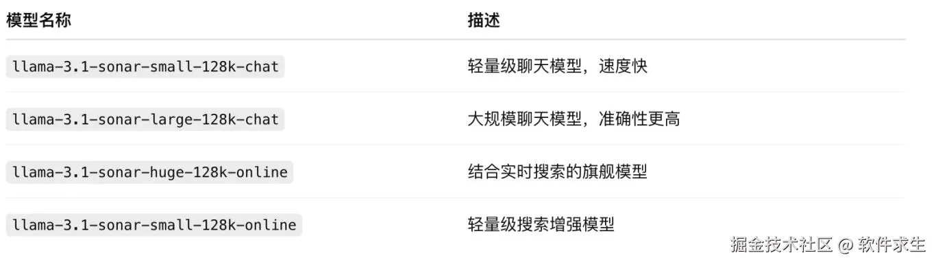 这里我特意选了 llama-3.1-sonar-small-128k-chat 作为模型,它是 Perplexity 提供的高效聊天模型之一。