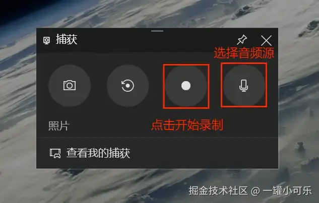 步骤1:按下快捷键 “Win+G” 就可以快速启动Xbox Game Bar了。然后点击 “捕获” 按钮唤出录制页面。