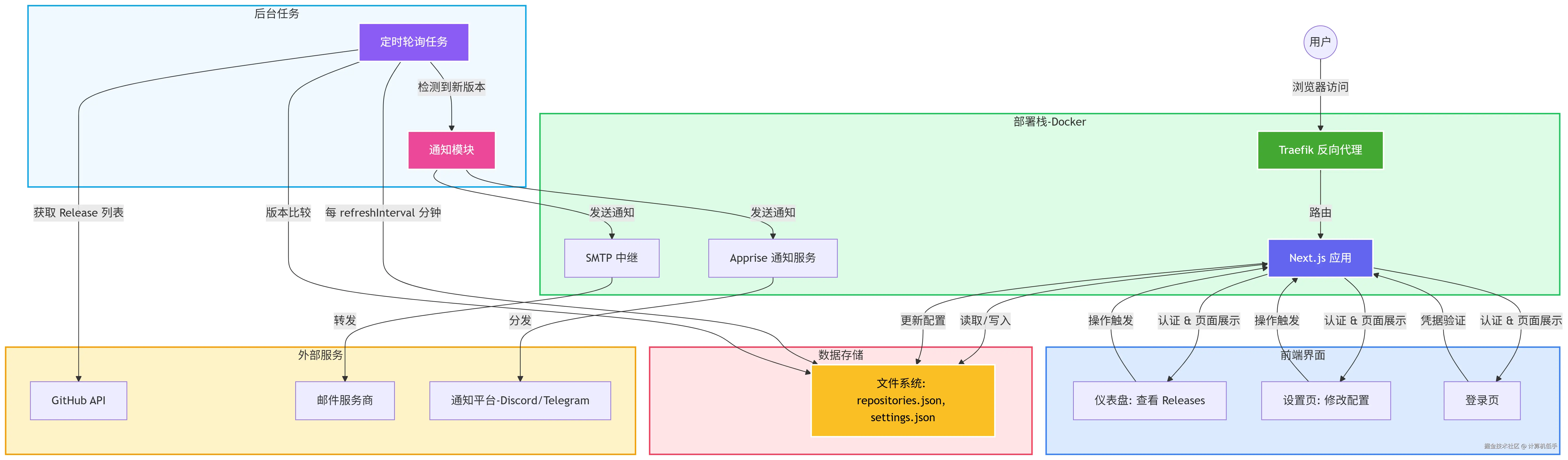 - GitHub Release Monitor 是一个功能强大、可自托管的工具,可自动监控 GitHub 开源项目发布并通过电子邮件、Apprise 等实时消息通知