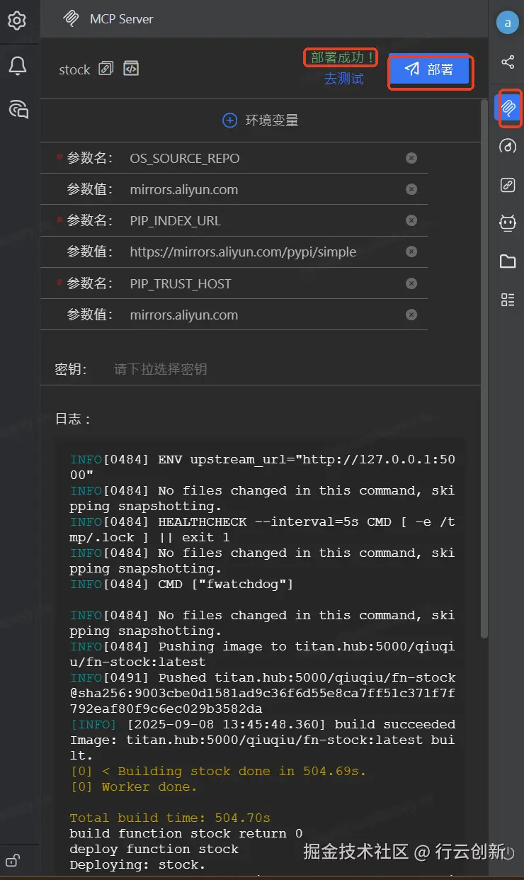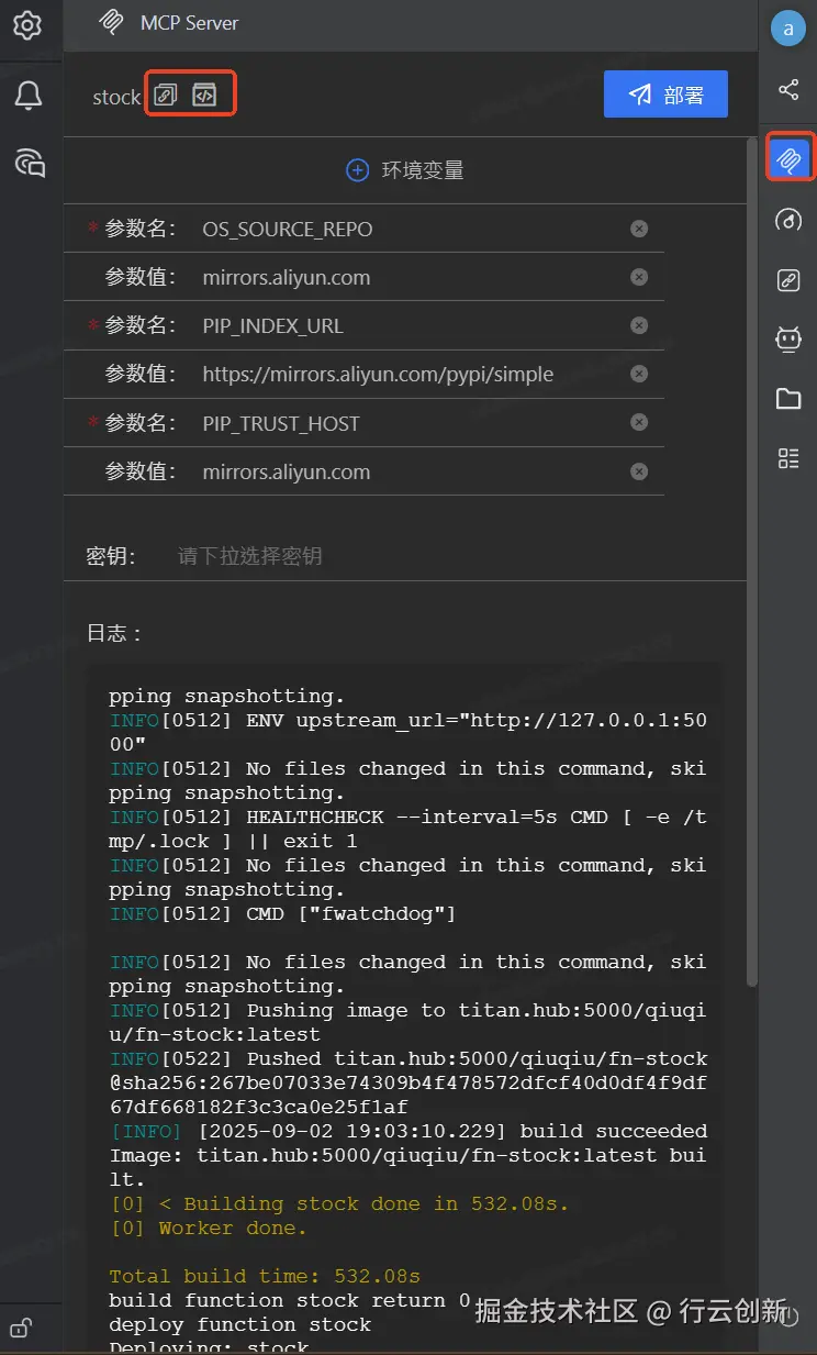 若您希望开发工具服务更多用户,只需一键即可将编写完成的 MCP Server 部署至远程环境,轻松实现开放共享与高效集成。
