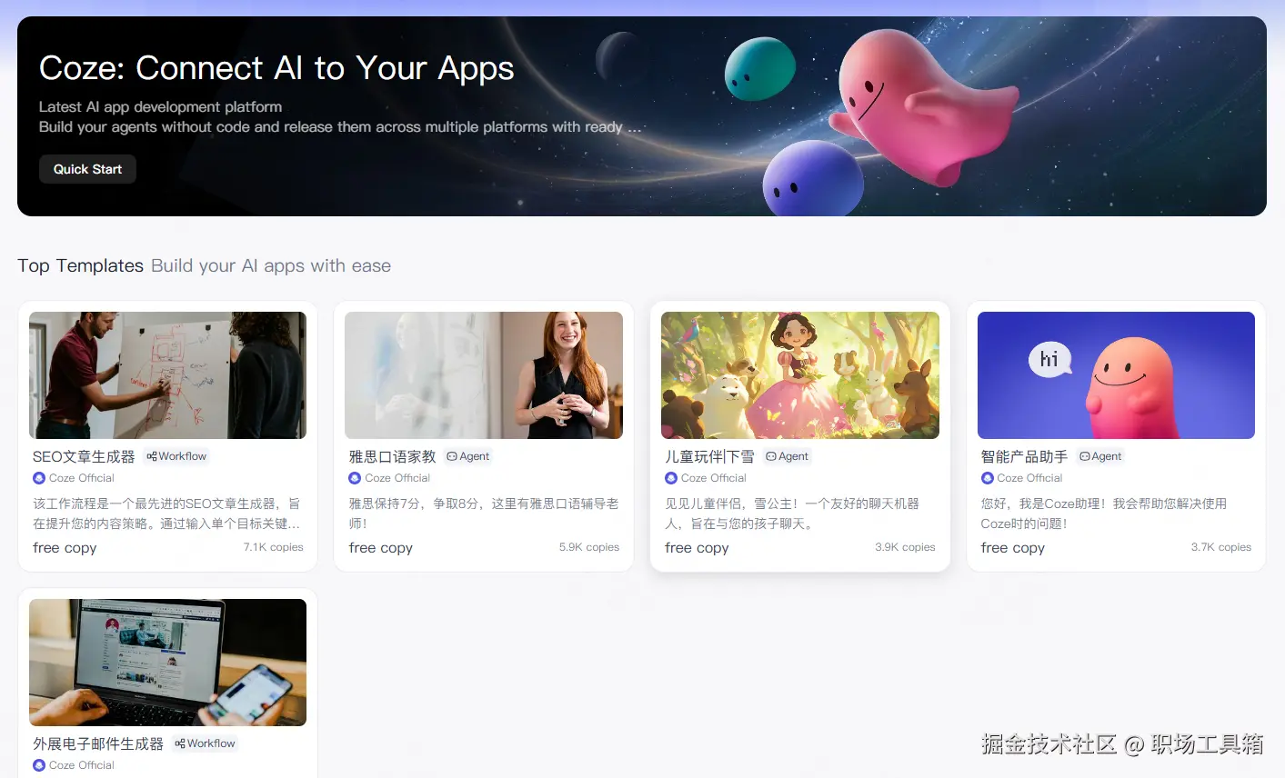 Coze扣子是字节推出的一款AI Agent开发平台,它提供了丰富的工具和插件,让开发者可以快速构建和部署各种类型的智能体。
