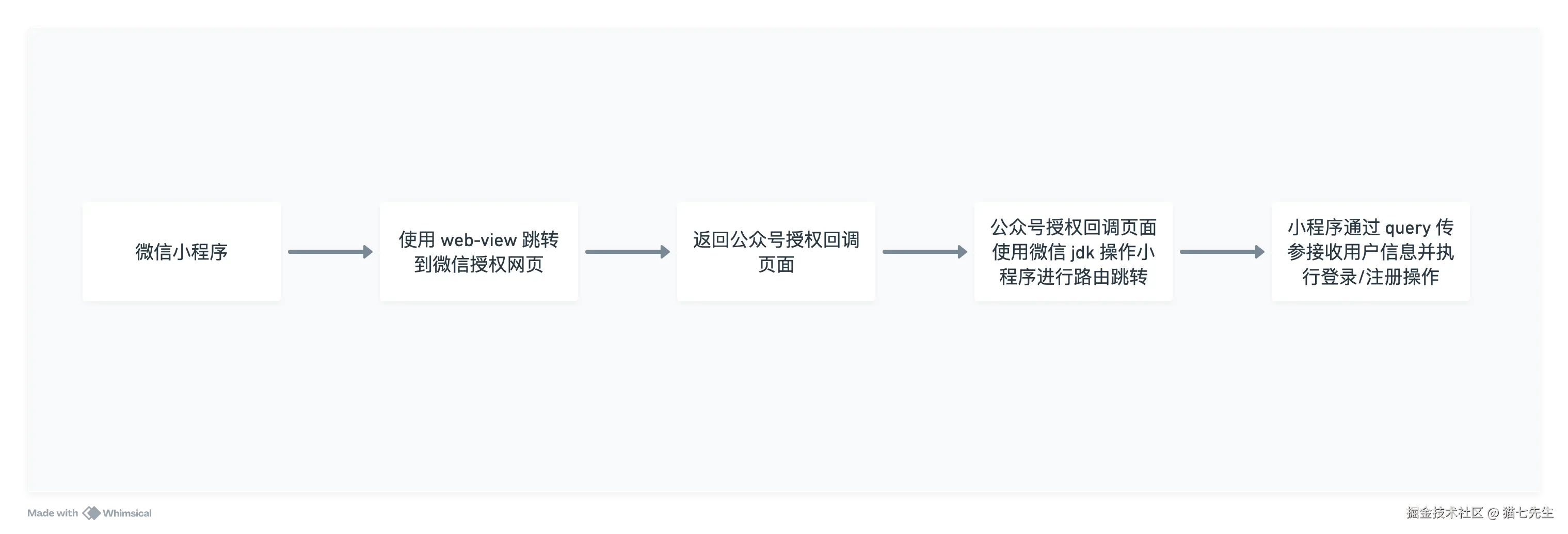 微信小程序的用户信息获取接口经过多次迭代后,目前已无法直接通过 API 获取用户的真实头像、昵称等信息。微信官方推荐的最佳实践是引导用户在个人中心或设置页面主动完善资料,但许多产品希望支持用户点击授权按钮即可完成登录。为此,我们可以利用微信公众号网页接口限制较宽松的特点,设计如下实现流程。