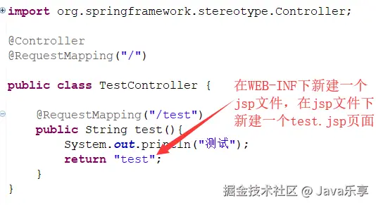 2.在controller新建TestController类,在WEB-INF下新建static目录,还在WEB-INF下新建jsp目录并新建test.jsp页面