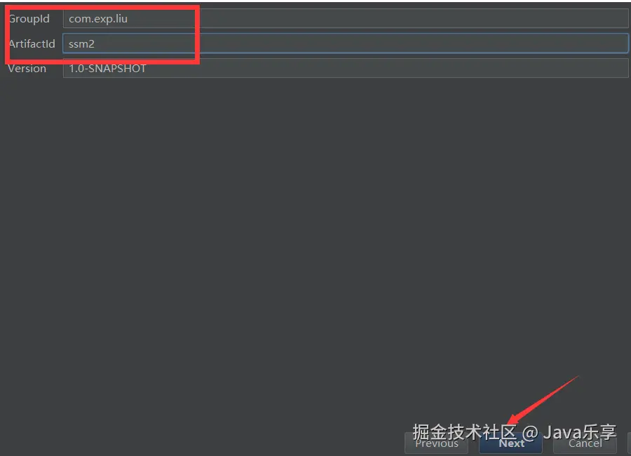 点击next后出现如下填写GroupId和ArtifactId在点击next直至finish