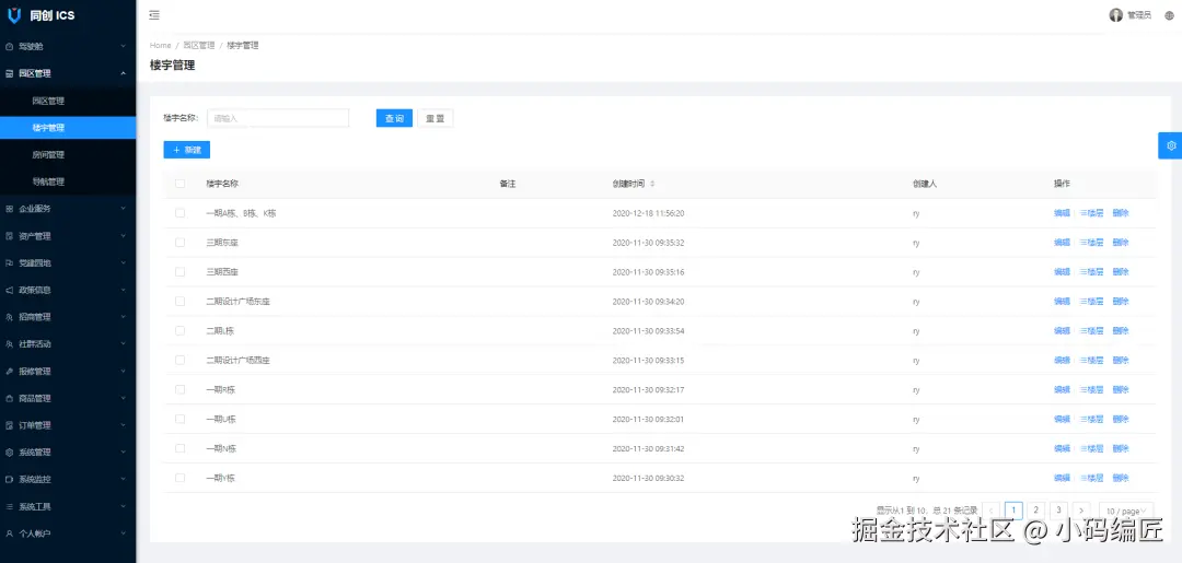 3、精细化管理:从园区基本信息配置到房间管理,再到企业服务和资产管理,系统实现了精细化管理。