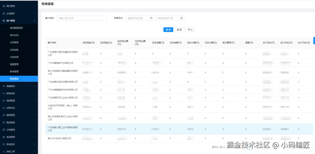 涵盖物业费、租金、水电费等费用的管理和账单报表生成。