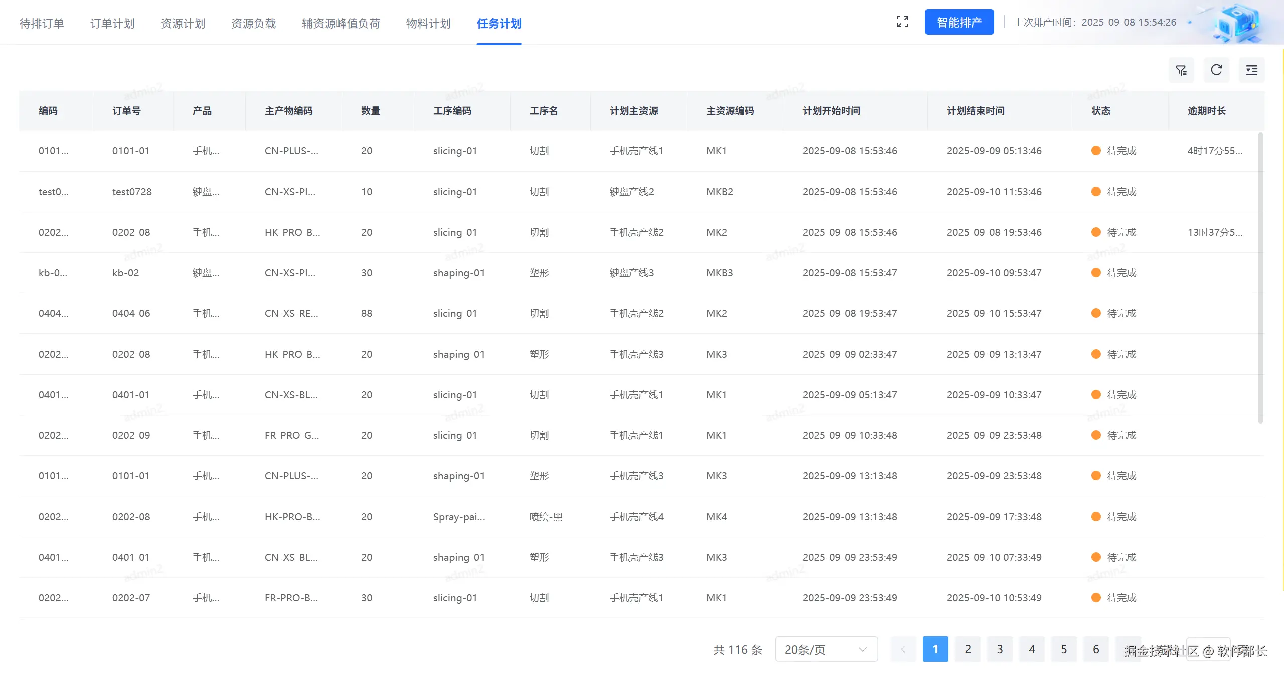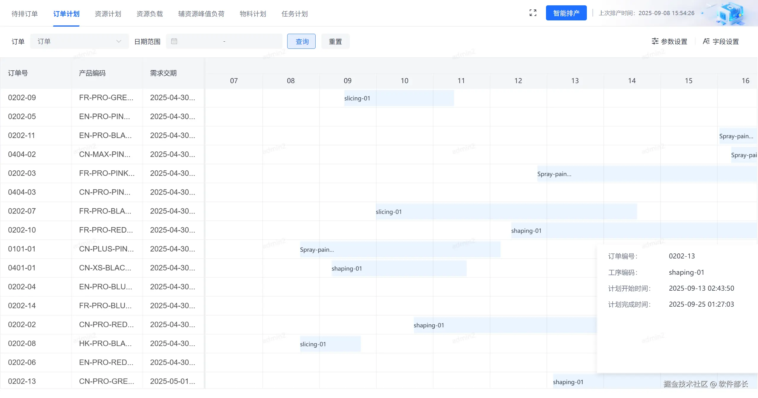 APS排产系统的核心目标是帮助车间制定详细作业计划,明确每个订单在所需要的资源上的加工开始时间和结束时间,通常以直观的甘特图形式呈现。