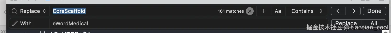 command + F 打开搜索全局替换注意按照我这个设置 然后点击All 点击完成后点击Done