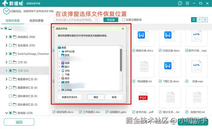 步骤3: 扫描完成后,点击右下角的【导出】,在【浏览文件夹】中搜索文件合适的存放位置。