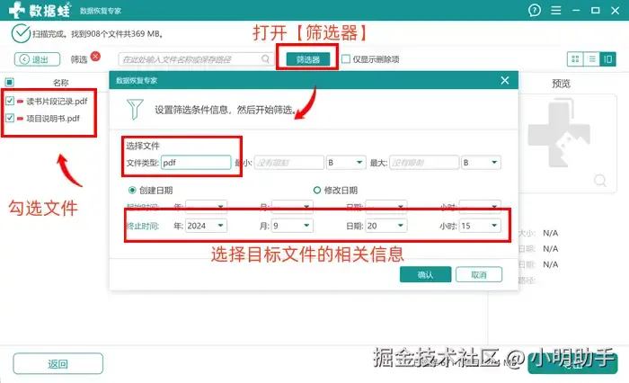 步骤2: 如果发现软件一下子就深度扫描,将一堆文件扫描出来,找不到目标文件该怎么办?可以试试上方的【筛选器】功能,进一步缩小文件的搜索范围。