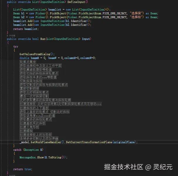 源码基于 C# 与 Tekla Open API 开发,采用模块化结构,包含构件输入验证、连接位置计算、加劲板生成、螺栓组布置等核心模块。代码逻辑清晰,参数集中管理,支持自定义扩展,便于集成至企业级标准节点库或自动化出图系统。