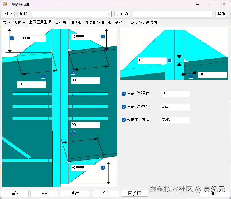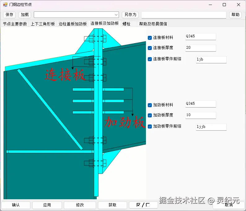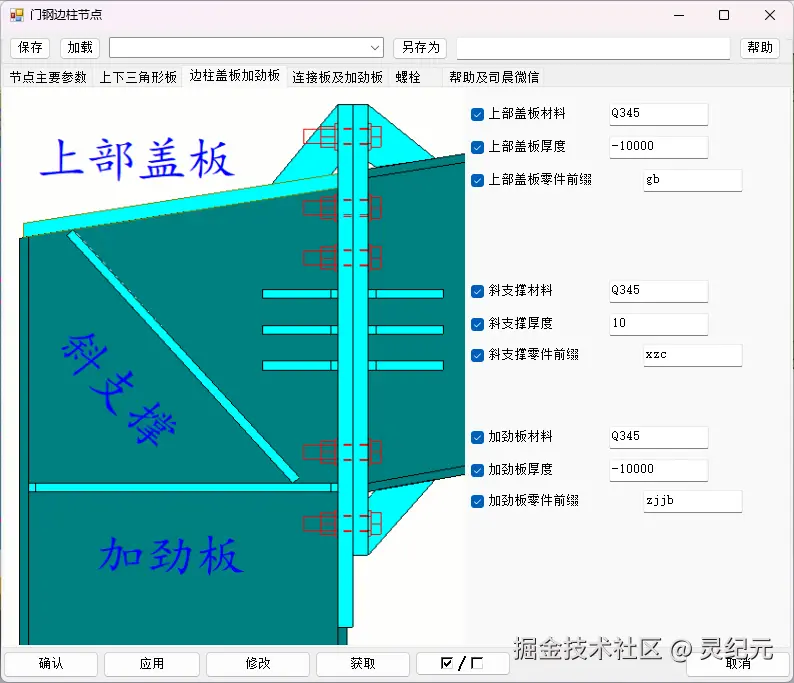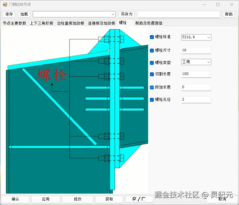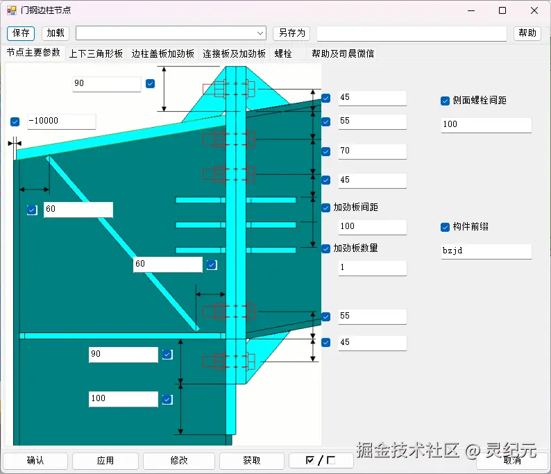 本节点源码用于在 Tekla Structures 中自动化创建轻钢结构二开门边柱与主梁的连接节点。支持边柱加劲板安装与螺栓组参数化布置,实现构件精确定位、连接板自动匹配与标准化建模,提升深化设计效率,适用于工业化住宅及门式刚架体系的批量建模需求。