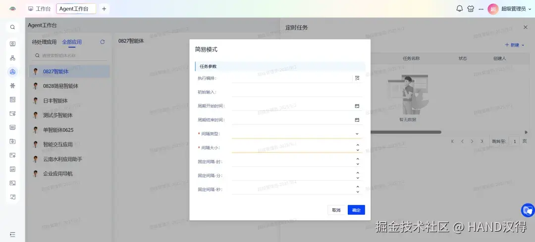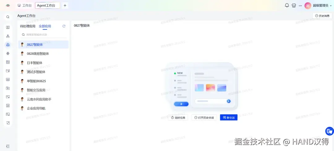 新版本对Agent工作台进行了显著增强。用户可以为智能体创建定时任务,实现自动化执行,解放人力,并可随时从工作台无缝发起应用新会话,极大地提升了操作灵活性与工作效率。