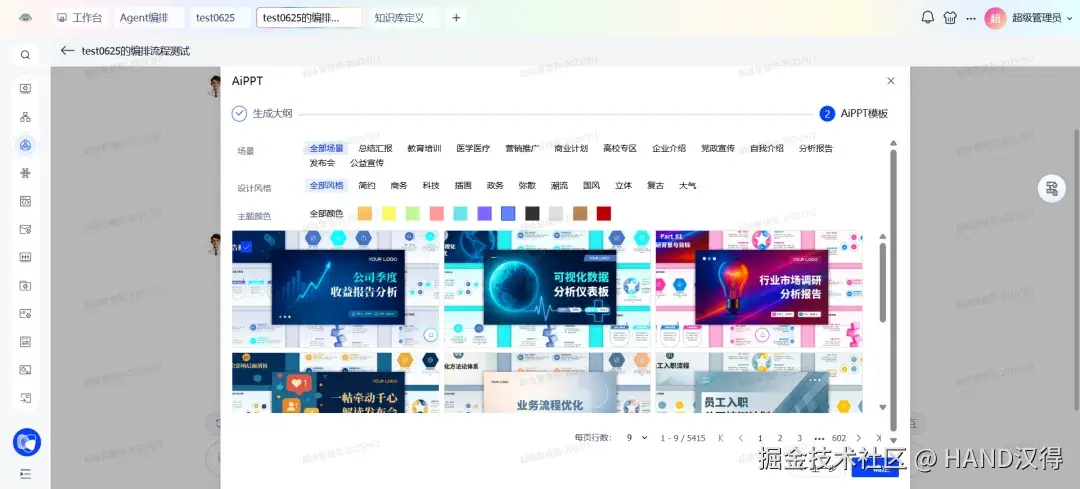AI PPT节点:不仅支持动态文本与动态文件,还允许用户自主输入内容或上传附件。该节点能够智能解析这些材料,自动提炼出关键信息与核心大纲,并提供多样化的PPT模板。用户可据此快速生成逻辑严密、设计优雅的PPT文档,高效满足学术汇报、商务演讲等多种场景需求。