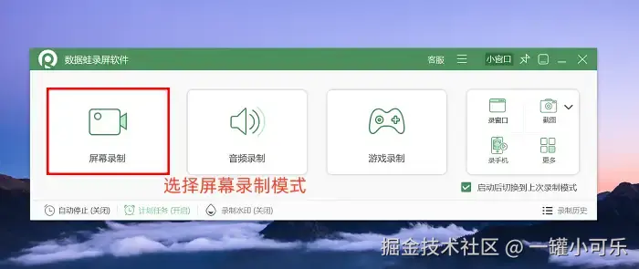 步骤1:首先启动数据 蛙录屏软件,进入主界面后,从提供的多种录制模式里挑选符合自身需求的类型。本次操作演示将以应用频率较高的 “屏幕录制” 模式作为示例。
