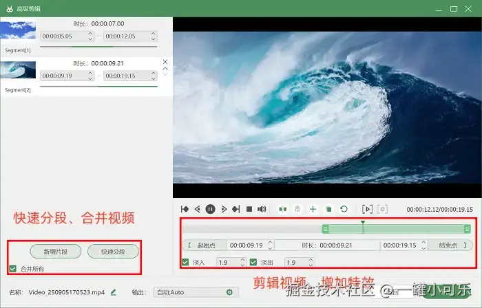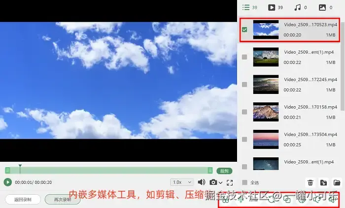 步骤3:视频录制结束后,无需跳转至其他工具,直接在软件内置的 “高级剪辑” 功能模块中,就能开展视频后期处理工作。常见操作包括为视频重新命名、截取关键片段、删除冗余内容等。
