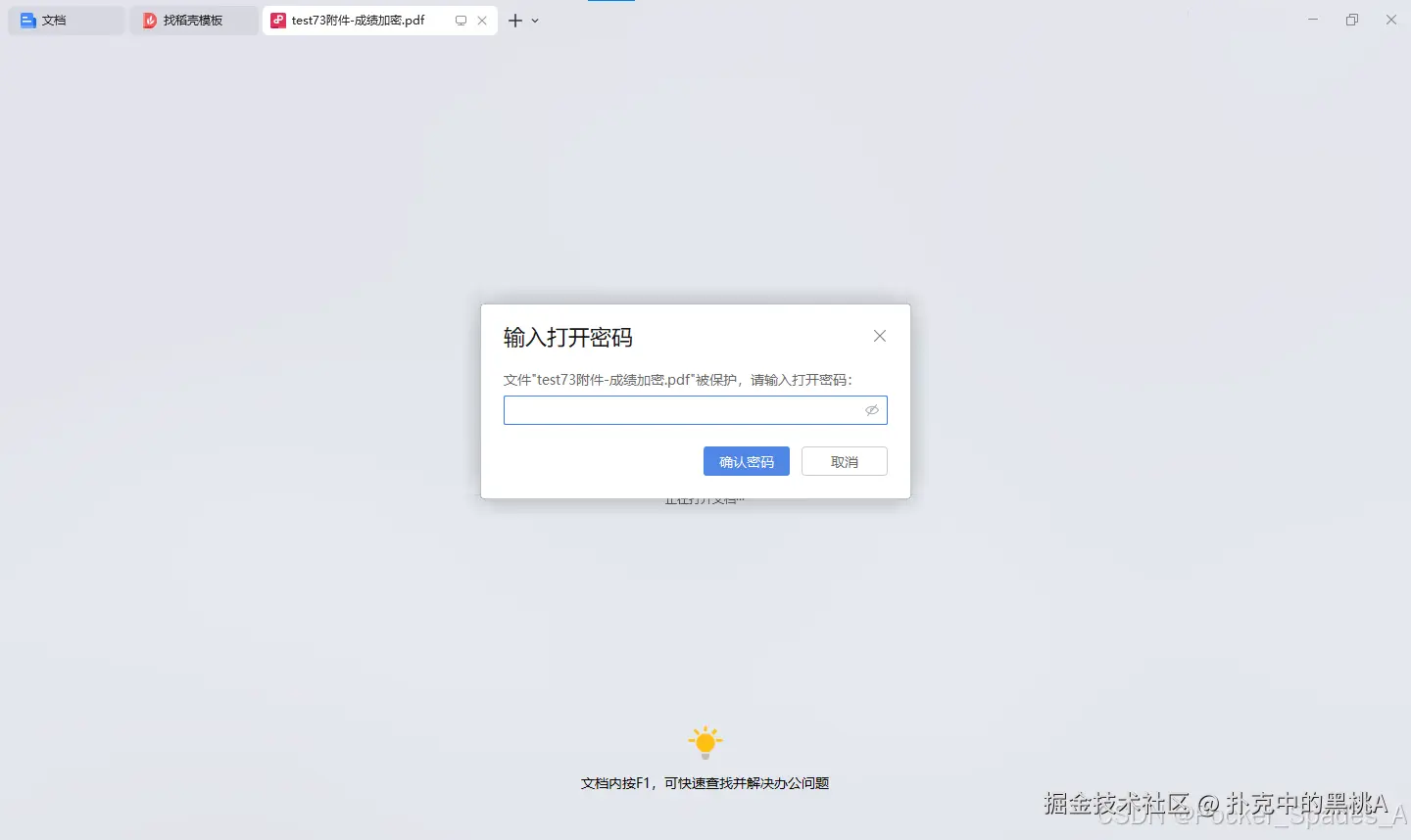 可以发现这个PDF文件现在需要密码打开了.