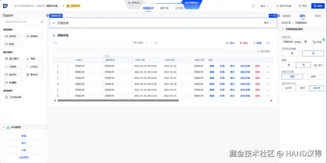 配置人员进入页面设计器后,根据实际的业务需求拖拽,快速构建流程表单