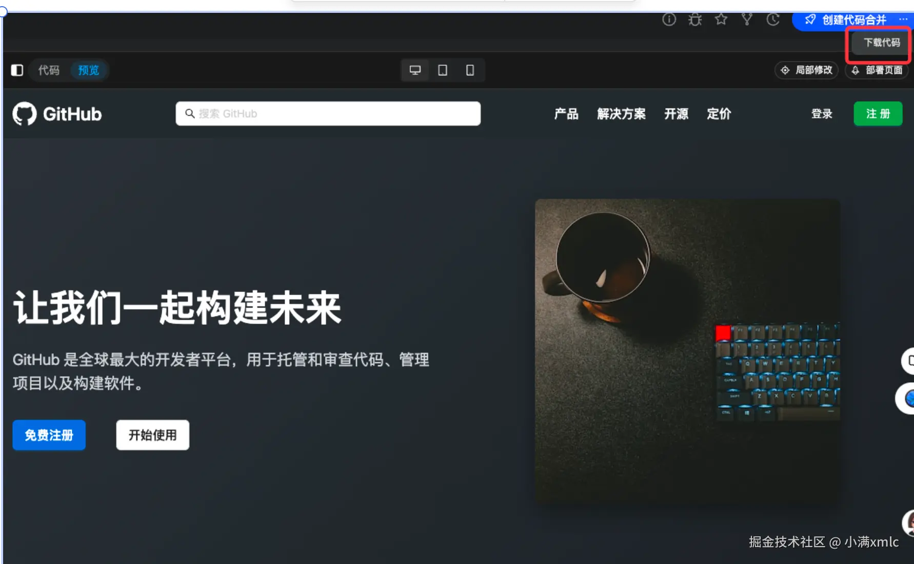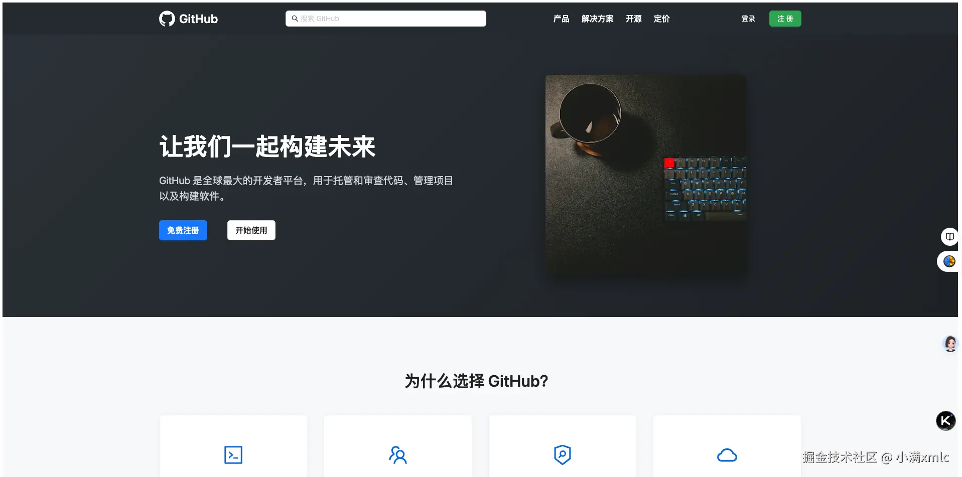 我们以 github 官网界面为例