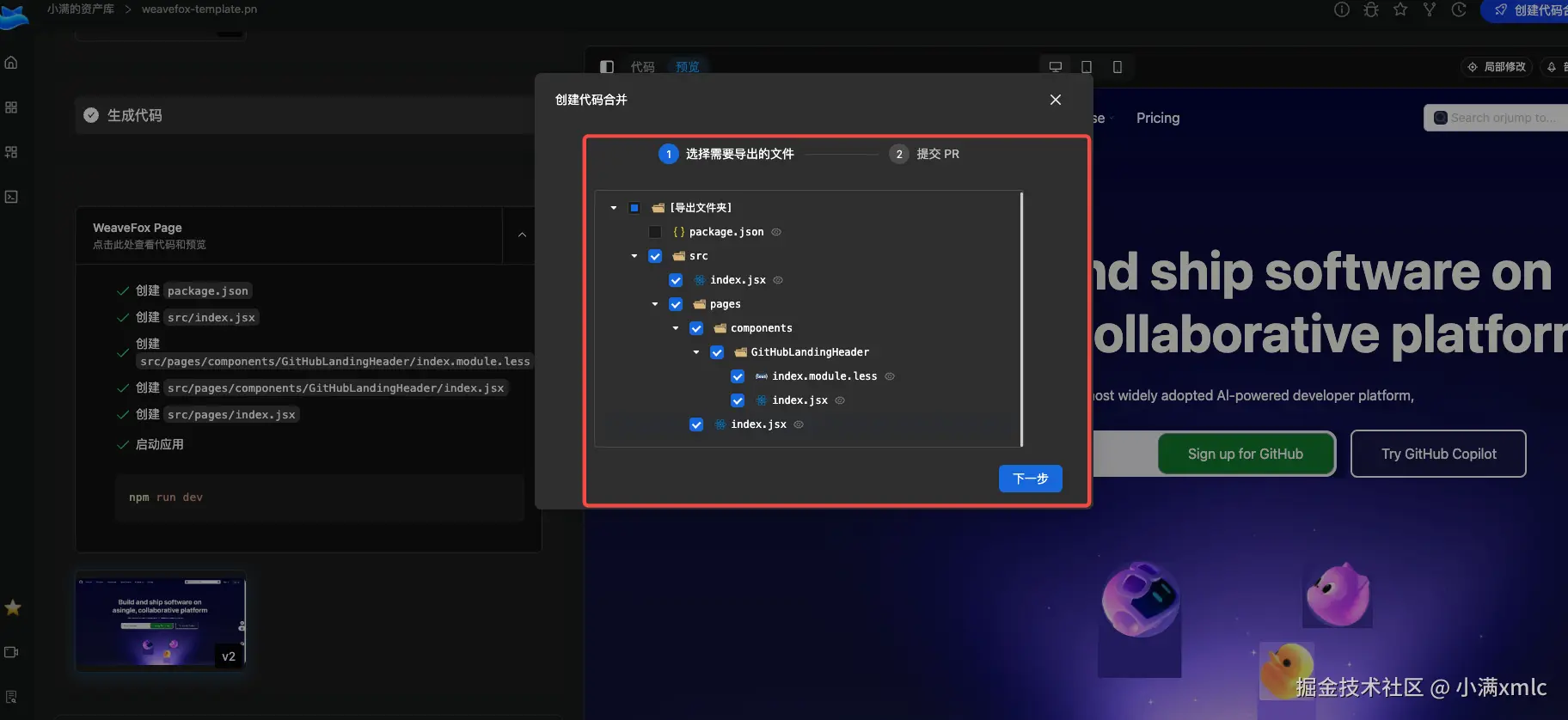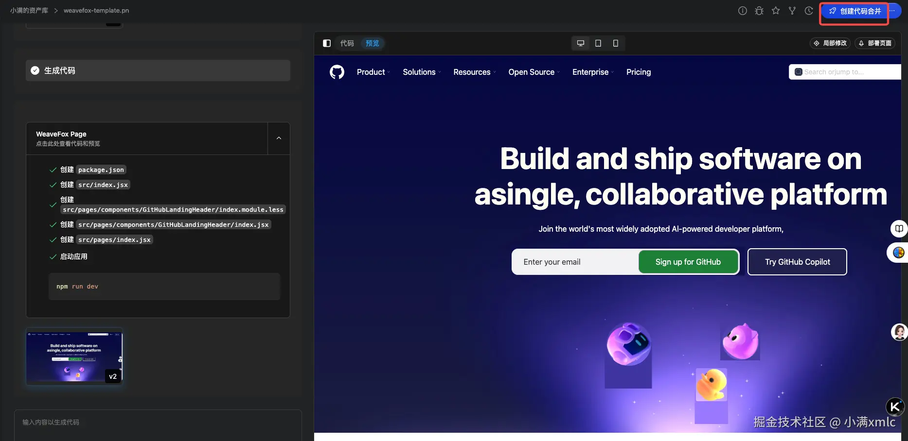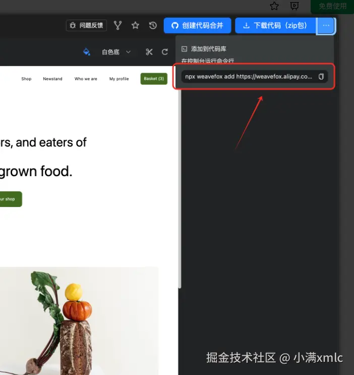 根据官方文档描述, 我们生成的资产会有一个命令行, 但是我看官网上目前没有(weavefox ai 发布不久,估计在内测中, 已经提交反馈)