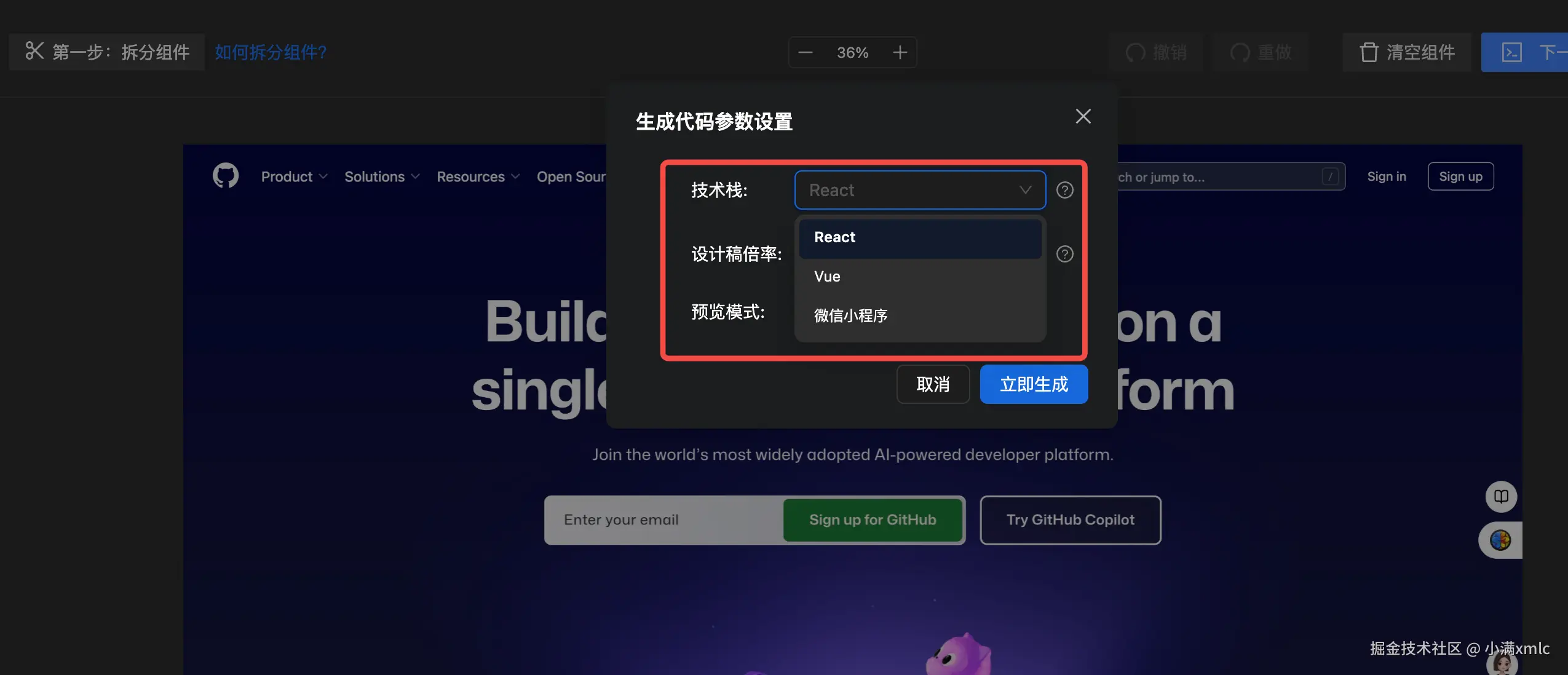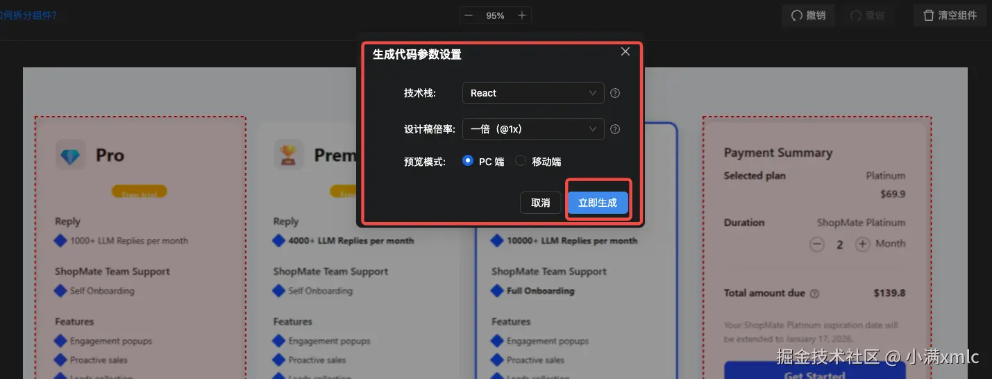 - 同一设计稿可一键生成 React、Vue、Ant Design 等多技术栈代码,无需重复开发