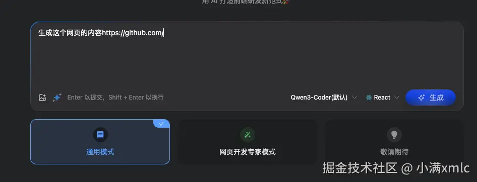 方式四: 直接输入一个网址,直接生成整个网页的 ui 实现, 但是这种方式生成的内容与原型图相差较大, 但是代码结构可以作为参考