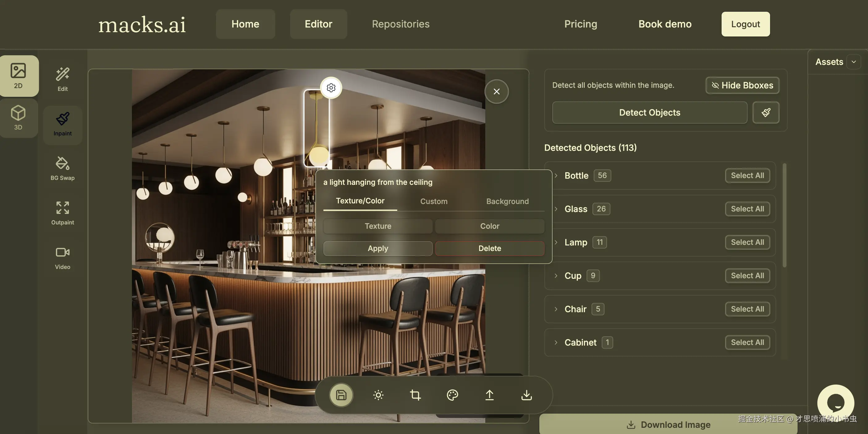 (1)利用物体级检测技术,以像素级的精准度编辑产品渲染图;