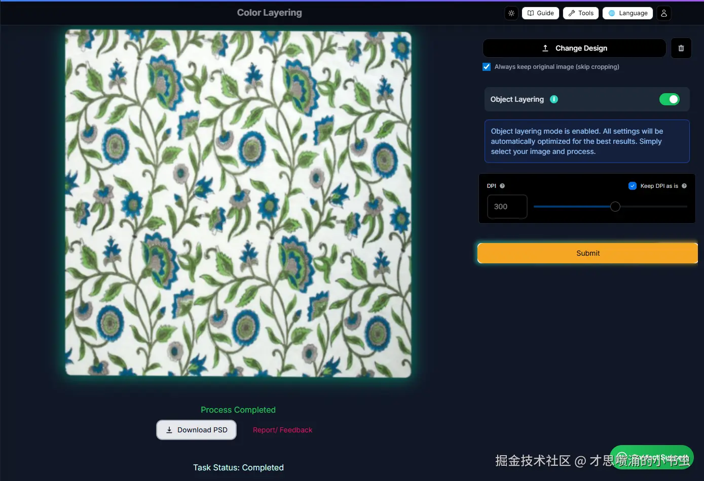 Object Color Layering 是一项基于人工智能技术的功能,专门用于将扁平化图像(如 JPG、PNG 格式)转换为分层 PSD 文件。